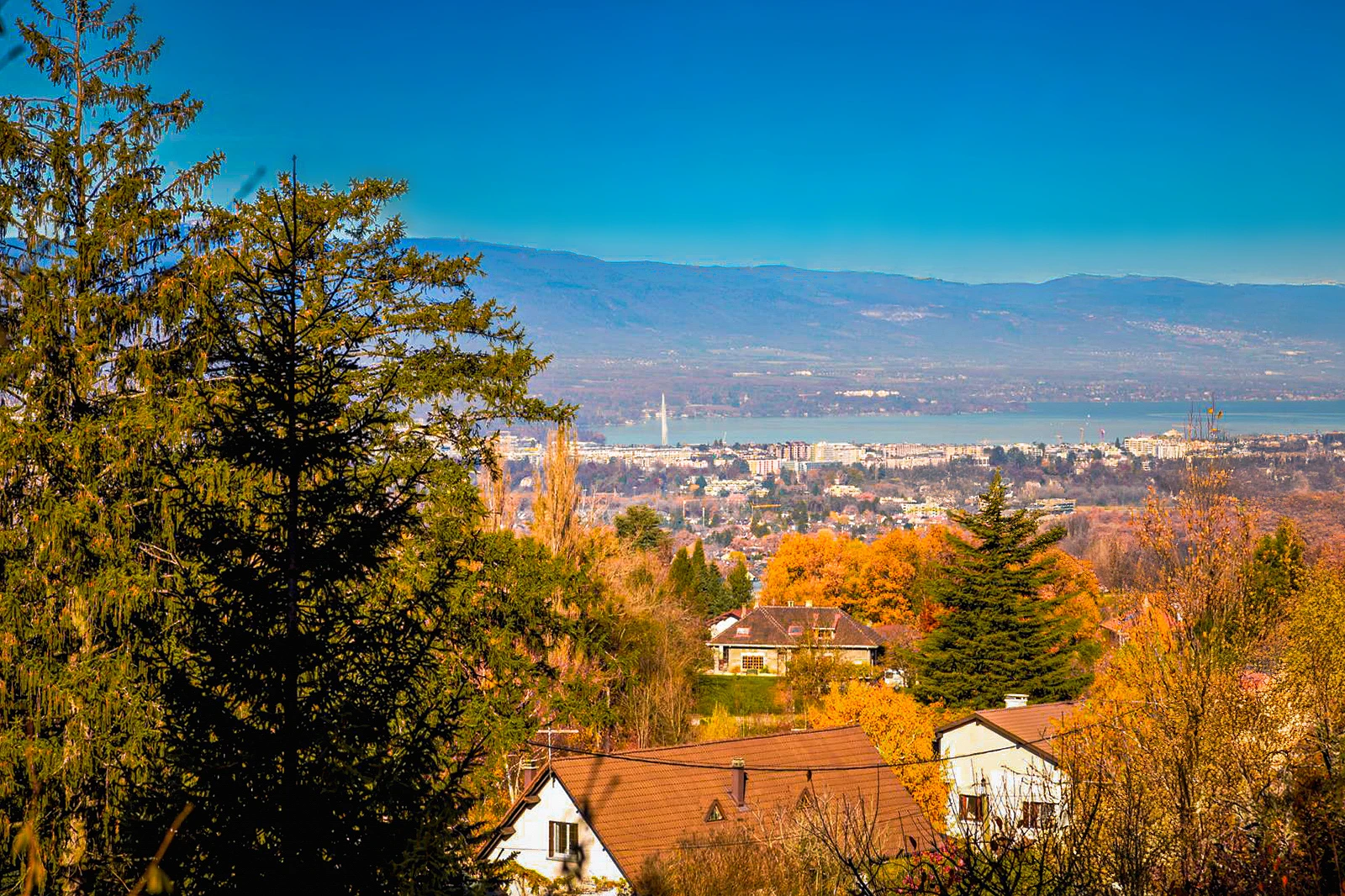 Located in a highly sought-after setting just minutes from Geneva, this character property built in the 1970s is set within a beautifully landscaped park of approximately 4,000 sqm. Sheltered from view and enjoying absolute peace and quiet, it offers exceptional panoramic views over Lake Geneva, the iconic Jet d’Eau and the Salève mountains.