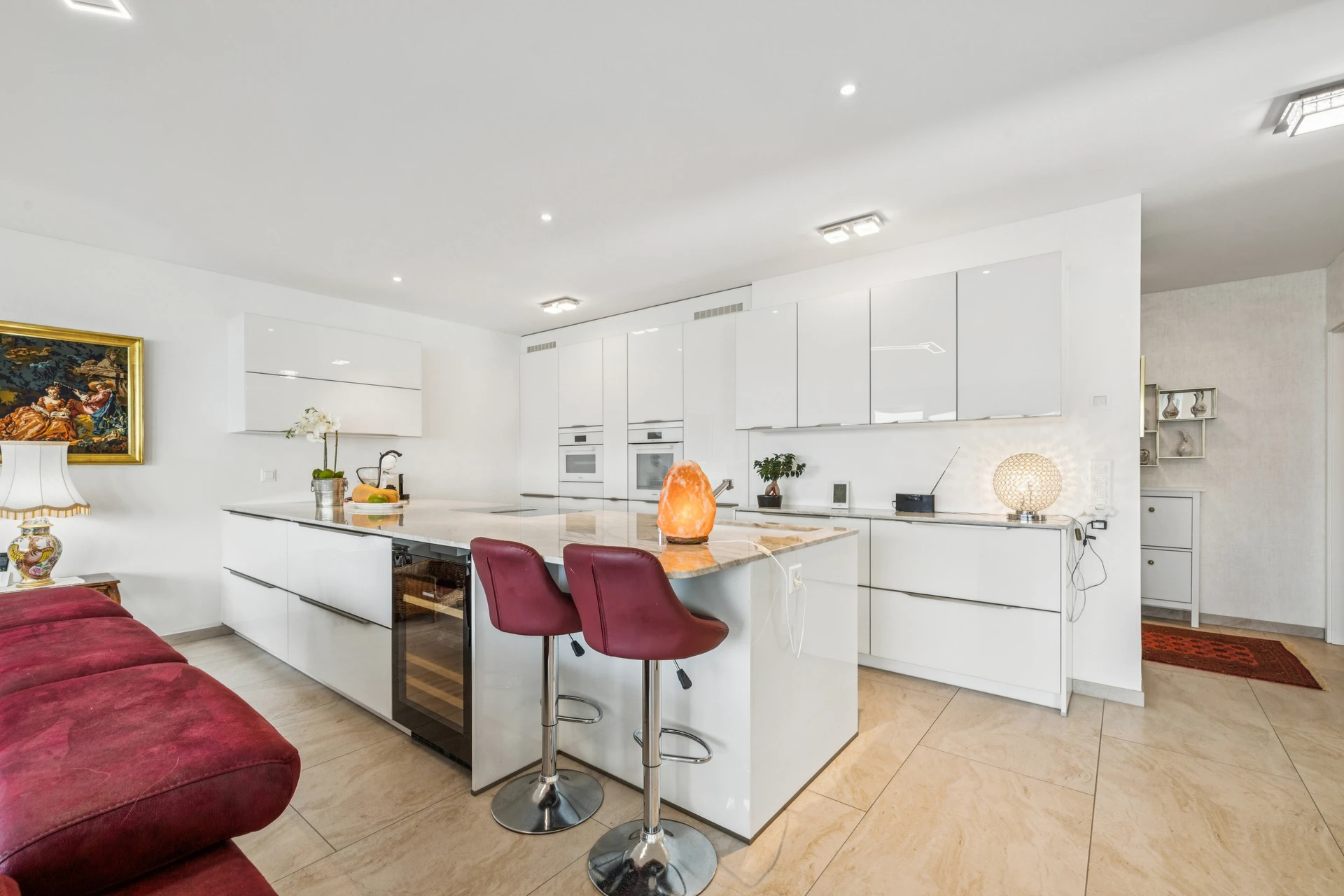 La cuisine haut de gamme, ouverte sur le séjour, crée un espace convivial et élégant.