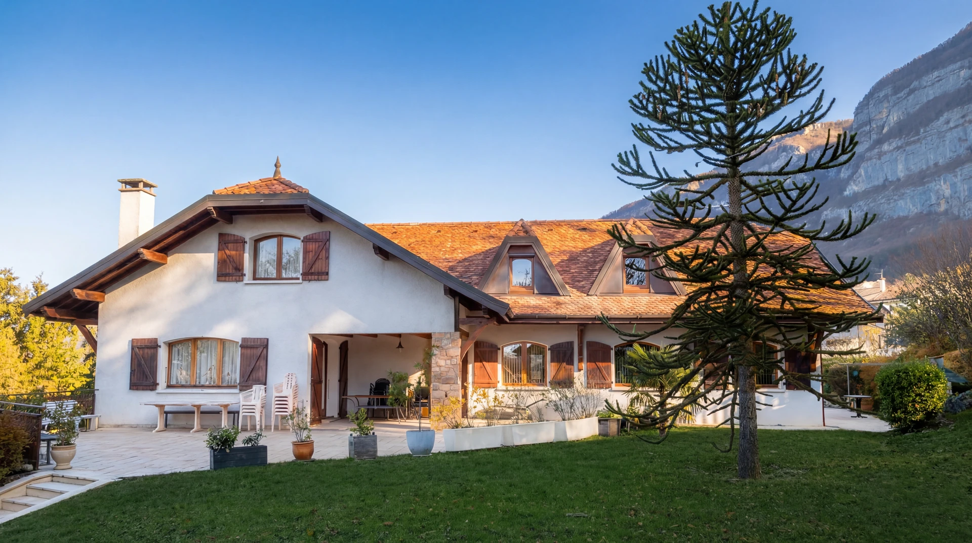 Au sous-sol, un espace de vie avec salle d’eau et WC permet l’aménagement d’un logement indépendant. Ce niveau comprend également plusieurs espaces de stockage, un carnotzet ainsi que trois garages. Une grande cour intérieure facilite le stationnement de plusieurs véhicules.