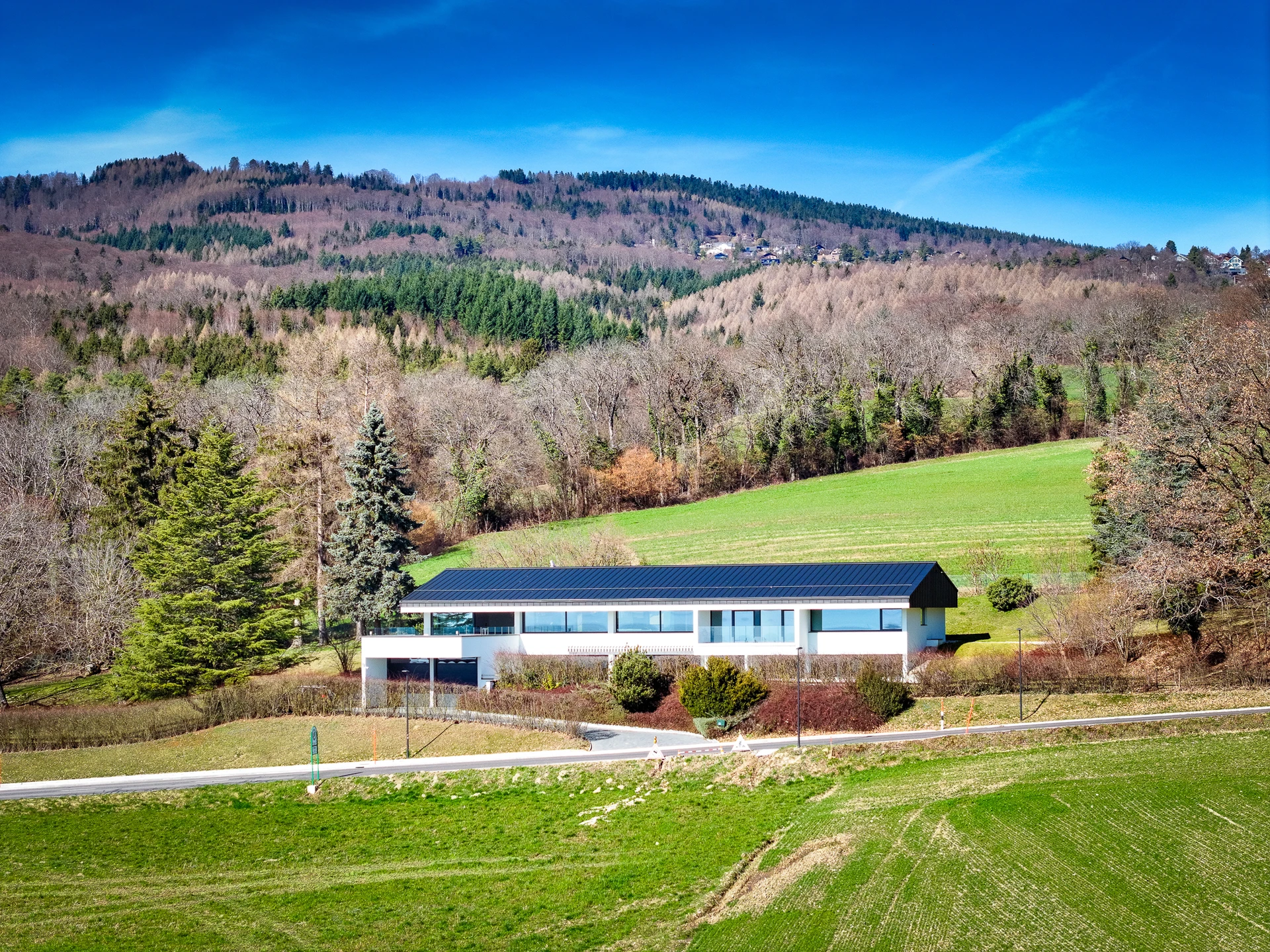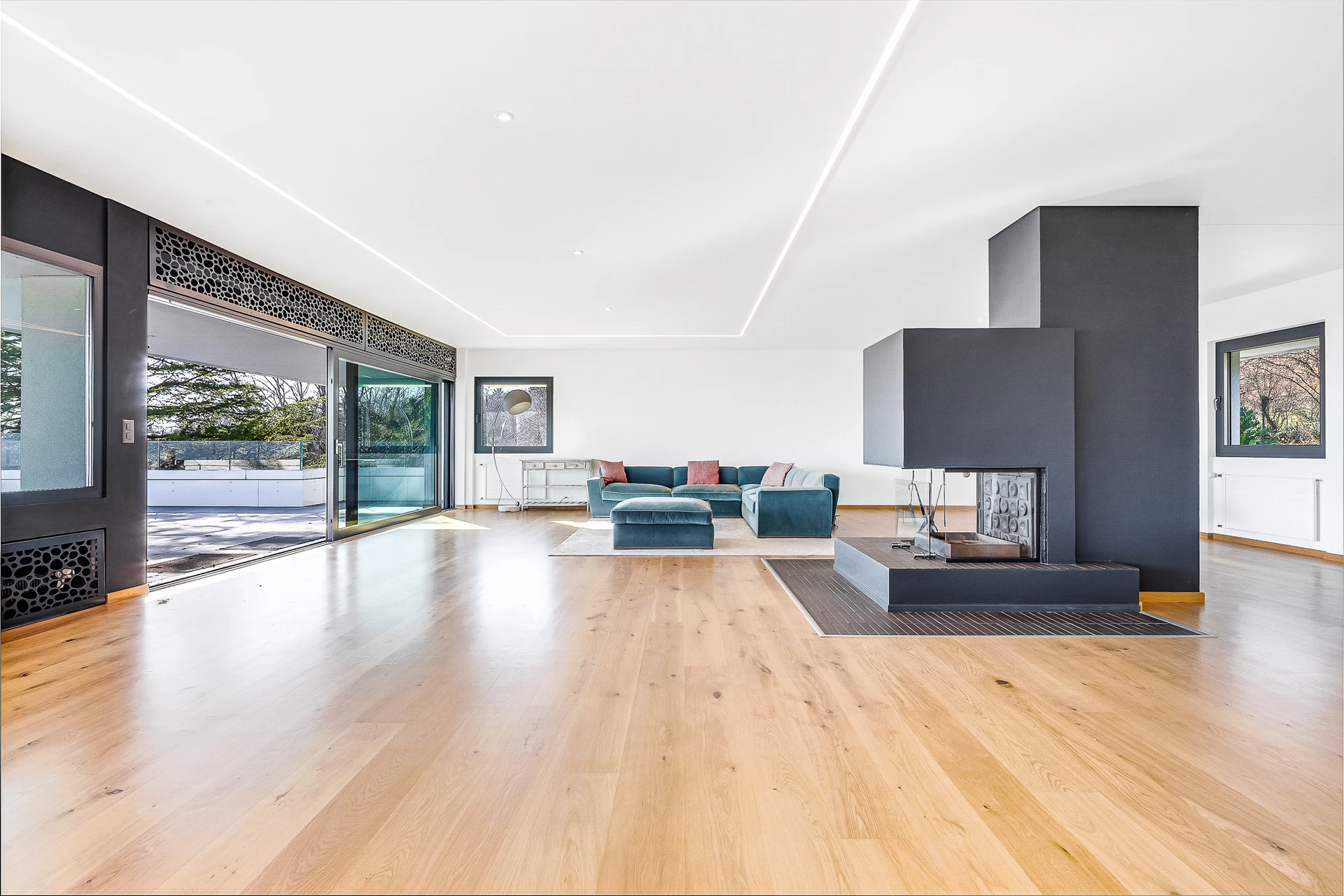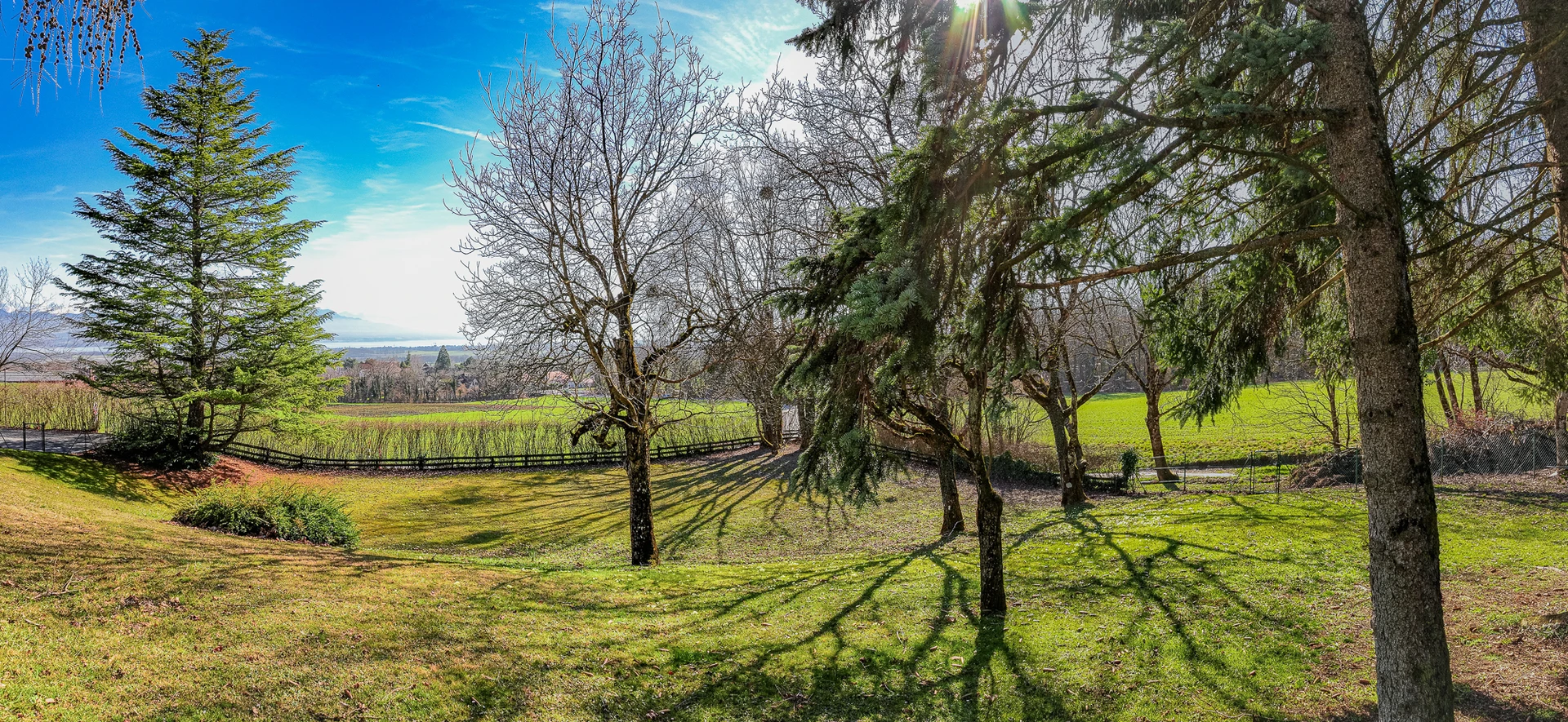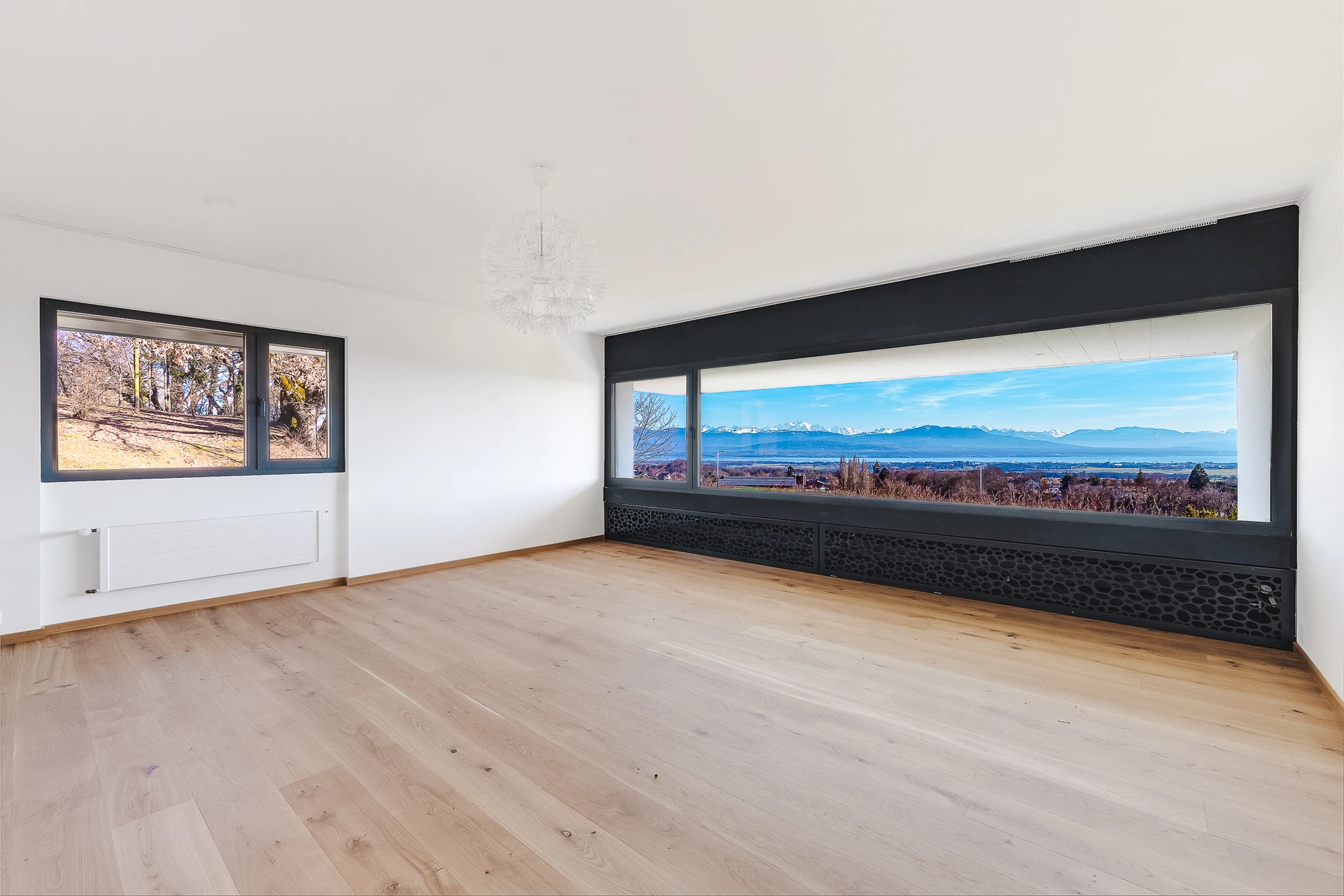 Set within a beautifully landscaped and tree-filled park, surrounded by agricultural land, this Finnish-inspired architectural residence was designed by Aarno Ruusuvuori. The home impresses with its modern lines, outstanding natural light and generous volumes, offering breathtaking panoramic views over Lake Geneva and Mont Blanc.