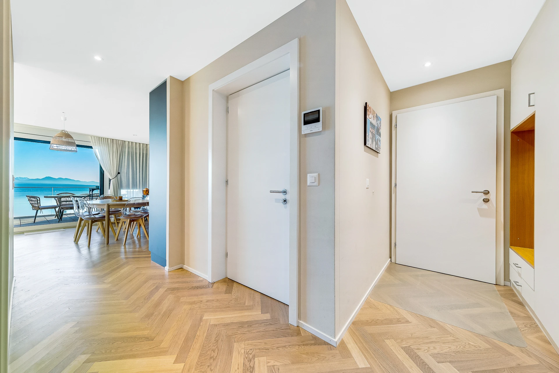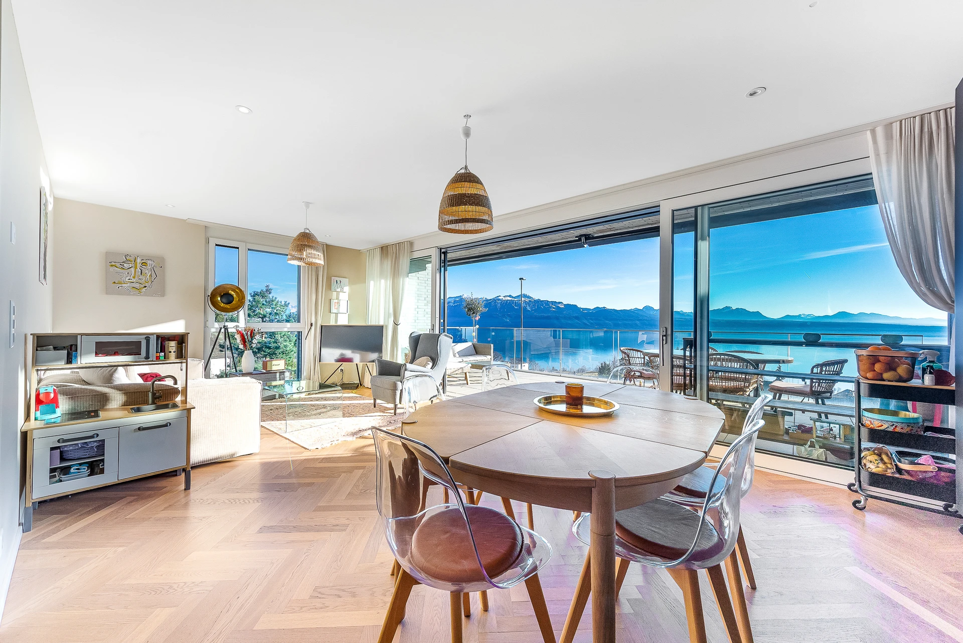Grâce à son orientation et à ses larges baies vitrées, l’appartement bénéficie d’un ensoleillement optimal tout au long de la journée.