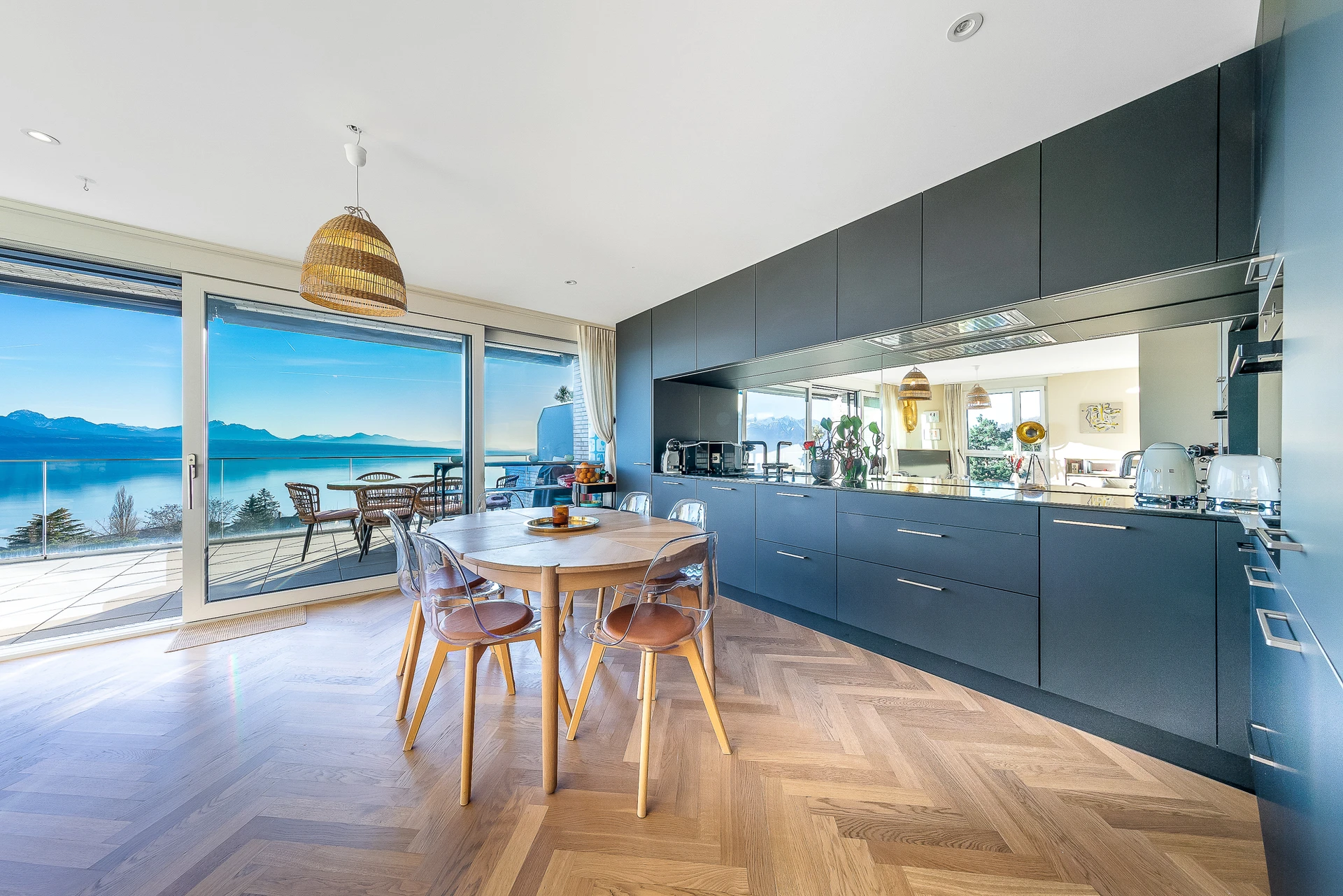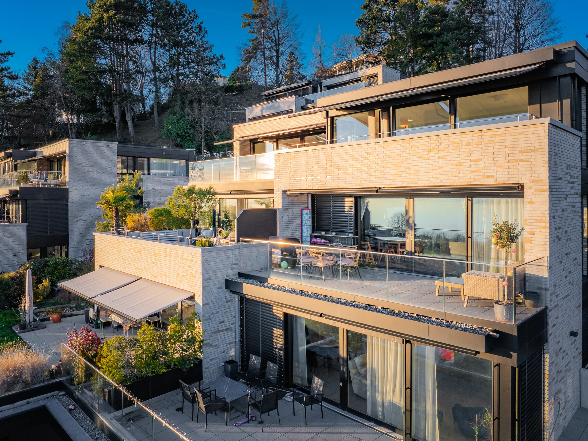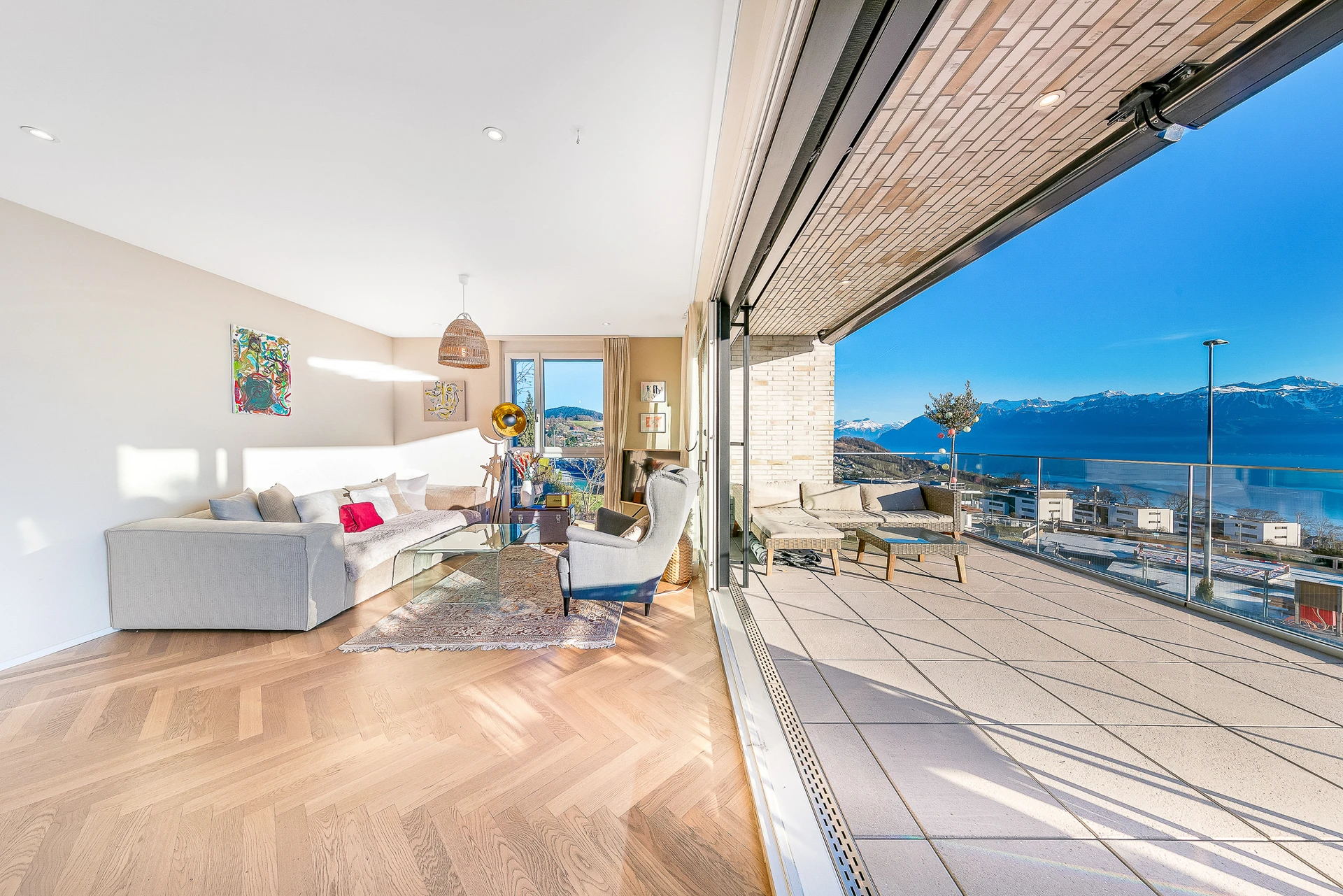 Sa position dominante lui offre une vue dégagée remarquable sur le lac et les environs. Idéalement situé, un arrêt de bus se trouve à seulement une minute à pied, garantissant un accès facile aussi bien en transports publics qu’en voiture.
