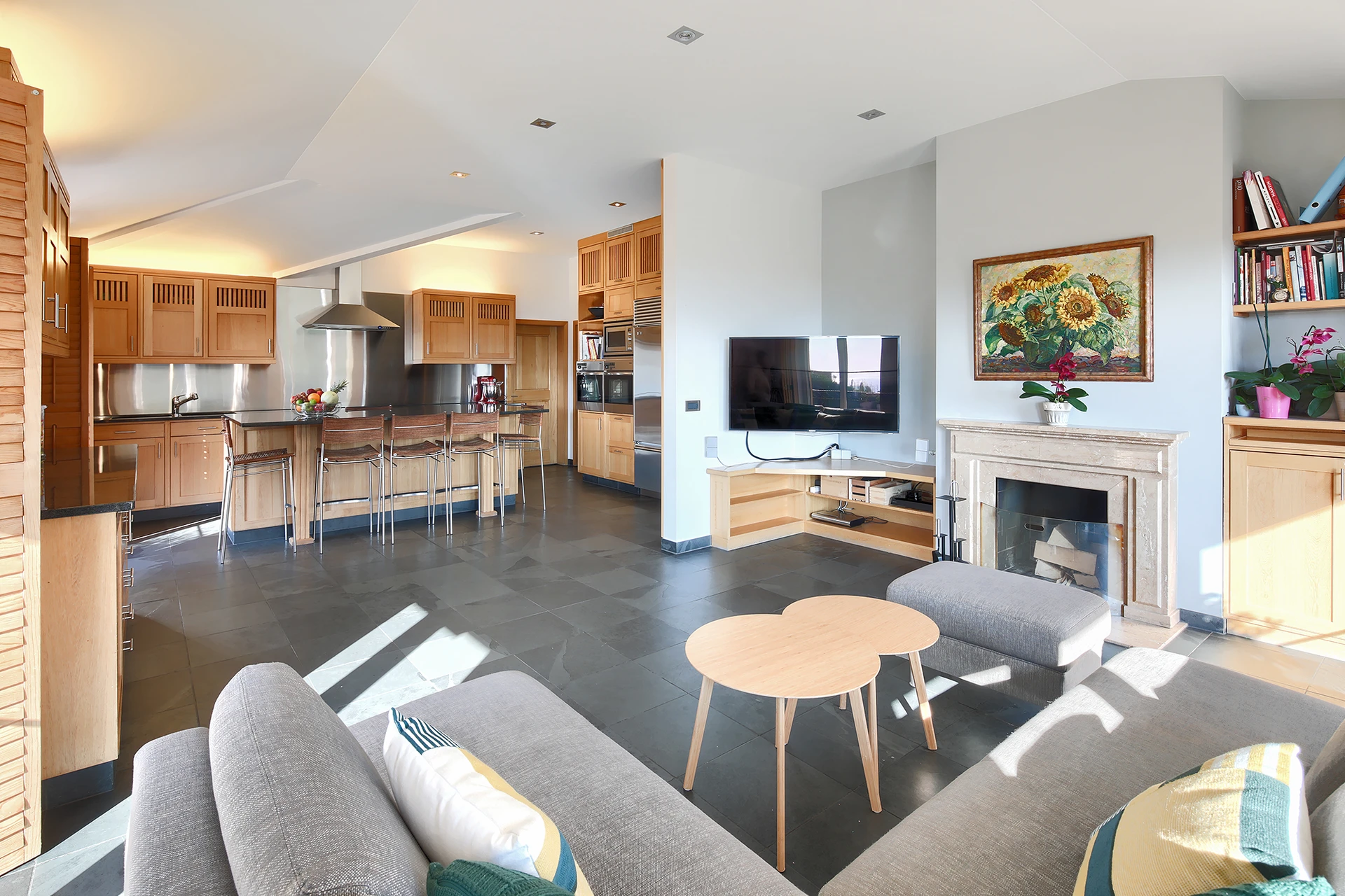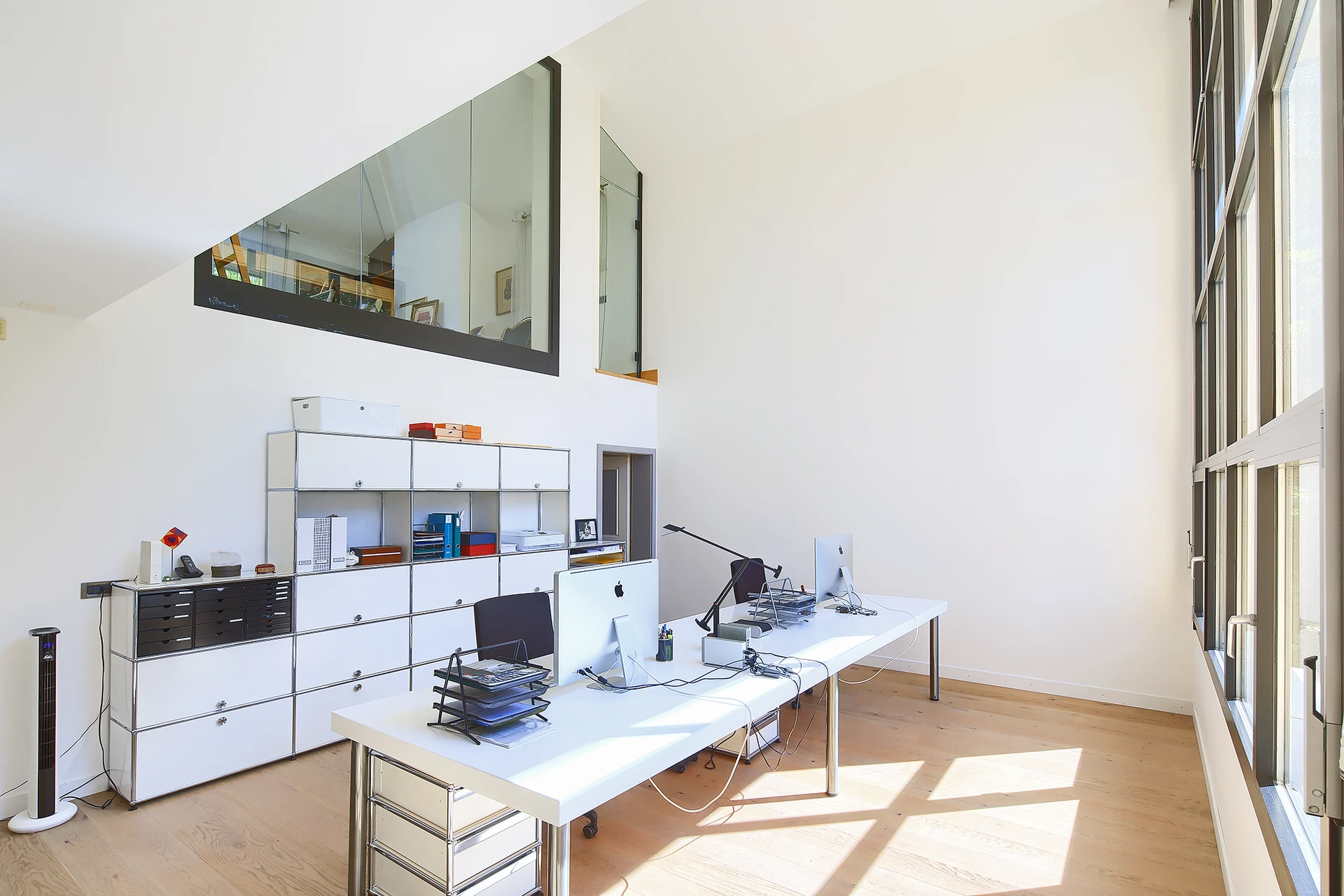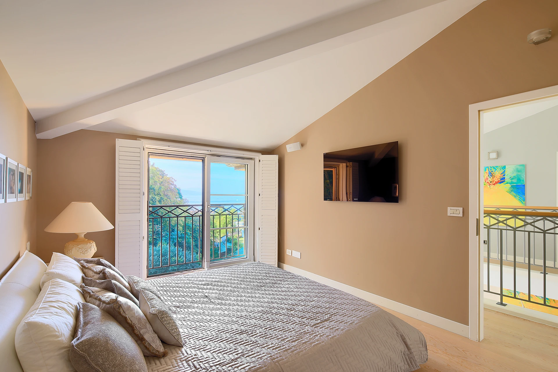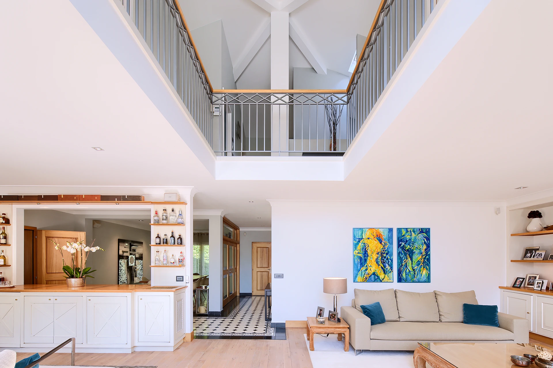 Les hauts plafonds, la lumière naturelle omniprésente et les grandes baies vitrées créent une atmosphère à la fois chaleureuse et raffinée, tandis que les multiples terrasses et la mezzanine invitent à profiter pleinement de la vue spectaculaire.