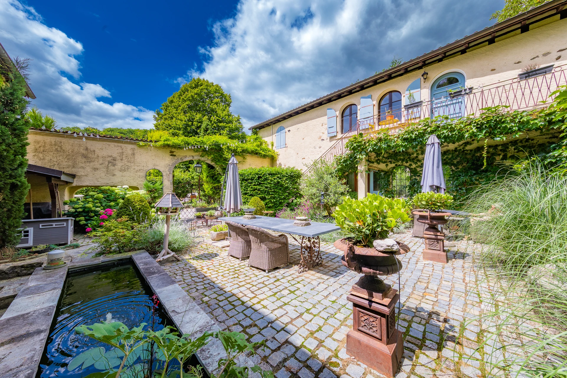 At the heart of the estate lies a private courtyard, offering a shaded retreat between the main house and a charming outbuilding. Nearby, a terrace overlooking the lake is perfect for morning coffee or summer evenings with guests. The landscaped garden is easy to maintain and offers full southern exposure.