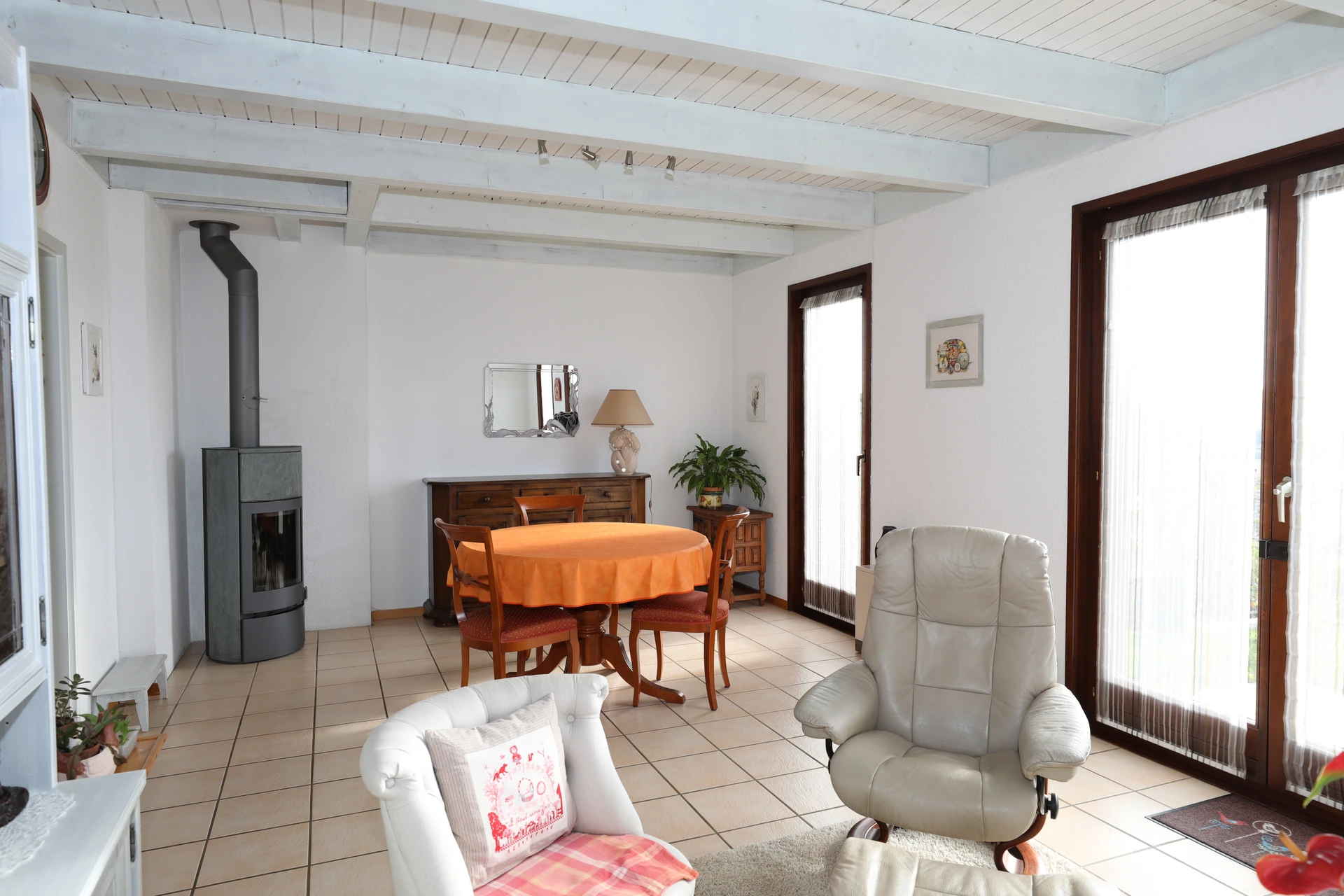 Découvrez cette charmante maison de 4.5 pièces, soigneusement entretenue par ses propriétaires et rénovée en 2015. Elle offre un cadre de vie chaleureux et confortable, idéal pour une famille. Ses espaces lumineux et ses finitions soignées créent une atmosphère accueillante dès l’entrée.